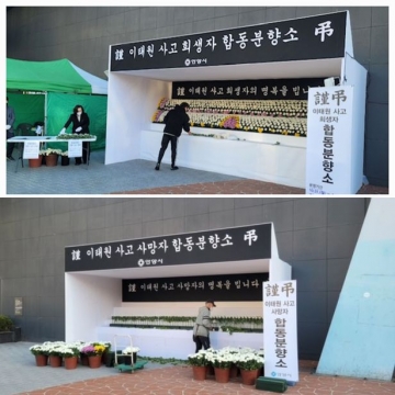 ▲안양시가 마련한 이태원 참사 관련 안양역 분향소. 시는 사망자 분향소 명칭을 희생자 분향소로 변경했다.